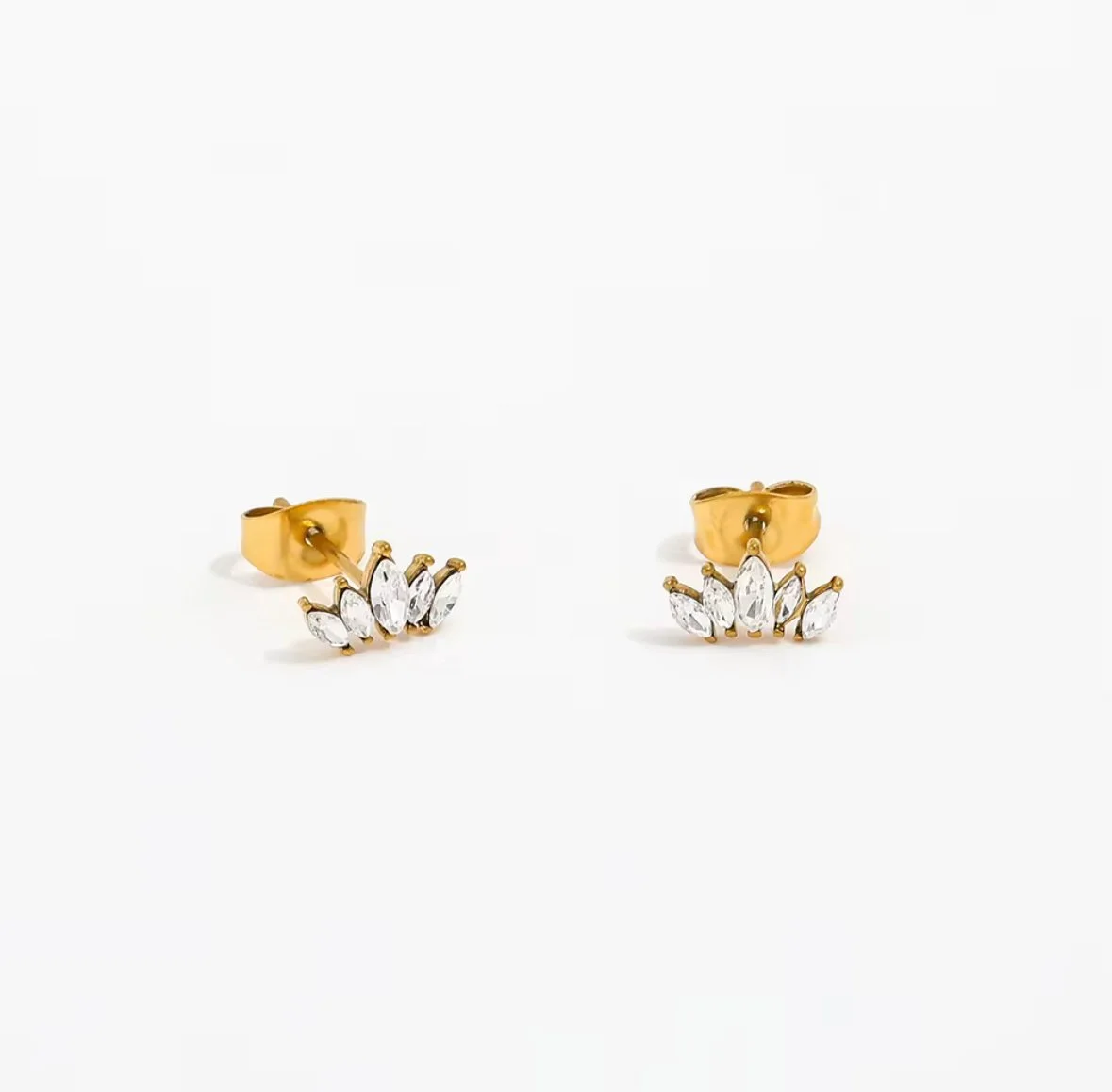 18 karat guldbelagte ørestikker med smukke zirkoner. Efterbehandlet med PVD-belægning, som sikrer, at smykket har en slidstærk overflade.